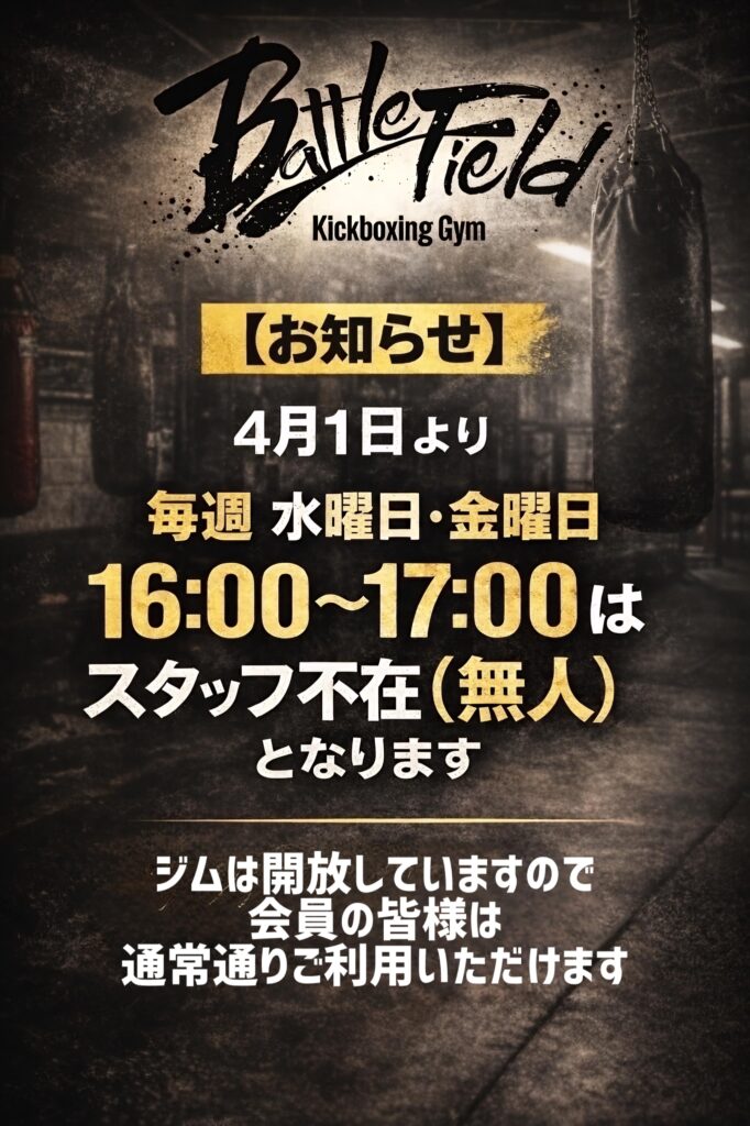 いつも Battle Field Kickboxing Gym をご利用いただき、誠にありがとうございます。