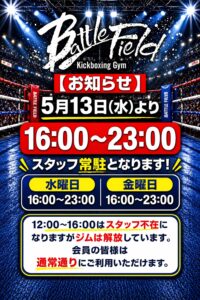 いつもBattle Field Kickboxing Gymをご利用いただきありがとうございます。