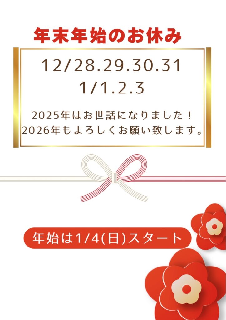年末年始の営業につきまして、下記の通りご案内申し上げます。