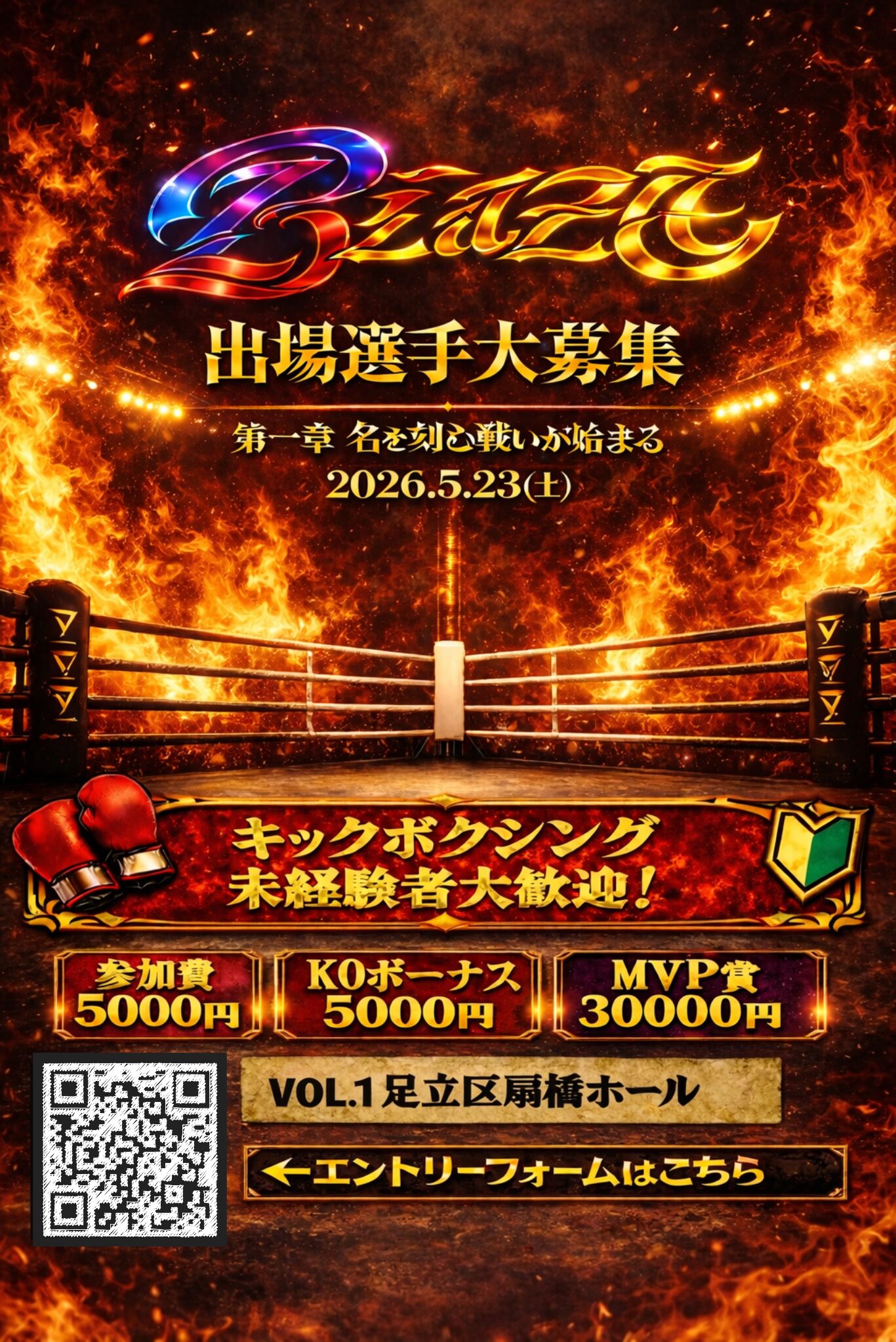 主催のキックボクシングイベント「BLAZE(ブレイズ)」を開催いたします🙇